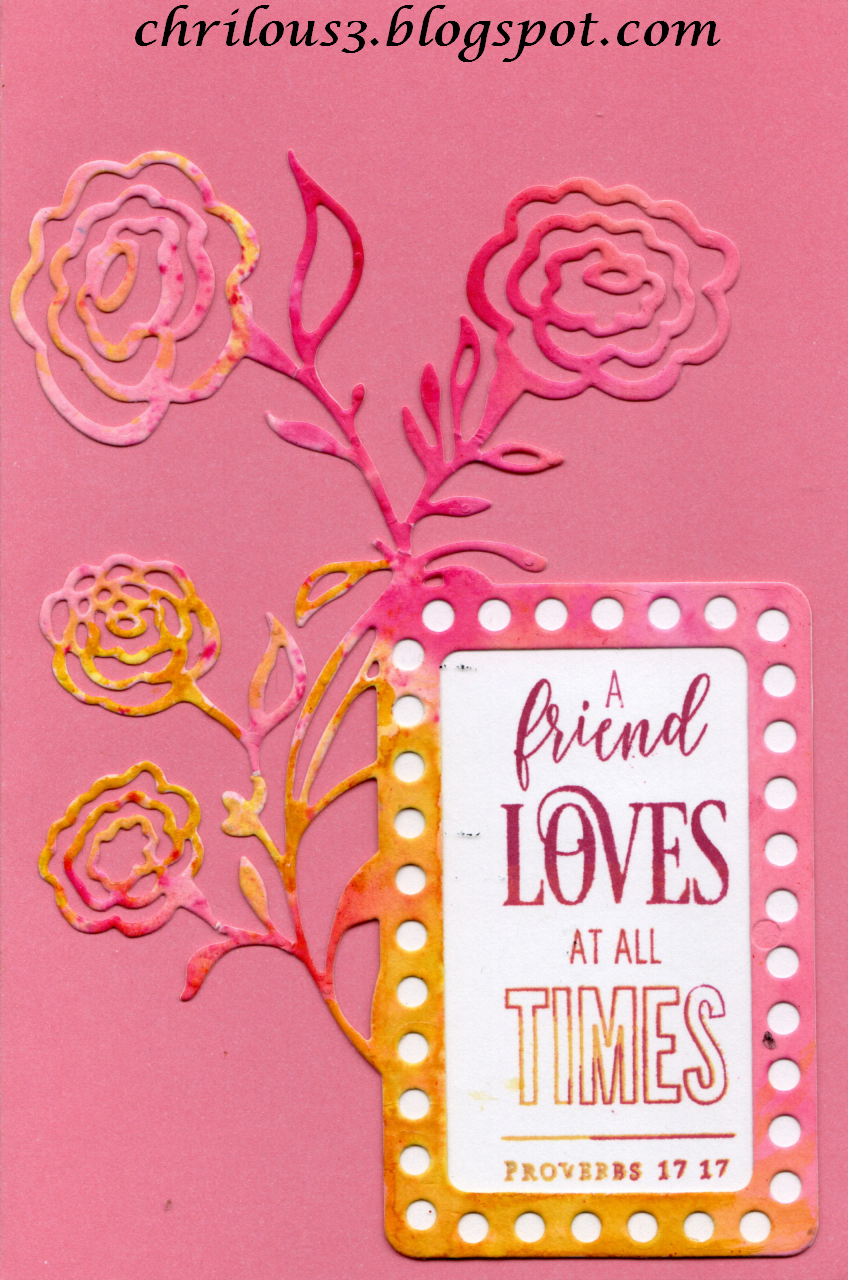 Alhoewel ik enkel wit papier gebruikt heb, Artist Aquarel Papier van Action voor de achtergrond en Paint On Mix Media van Clairefontaine voor de basiskaart en bloem geeft de scan precies een licht roze achtergrond weer.