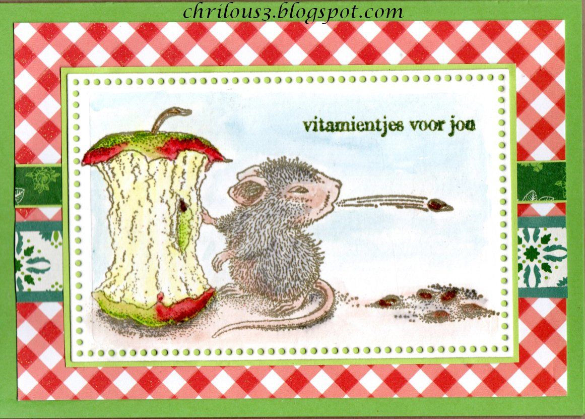 kaart voor de House Mouse & Friends Monday Challenge # 440 "Anything Goes + option of Add Some Sparkle" Ik weet niet of het duidelijk te zien is maar de rode ruitjes hebben een glanzend laagje.